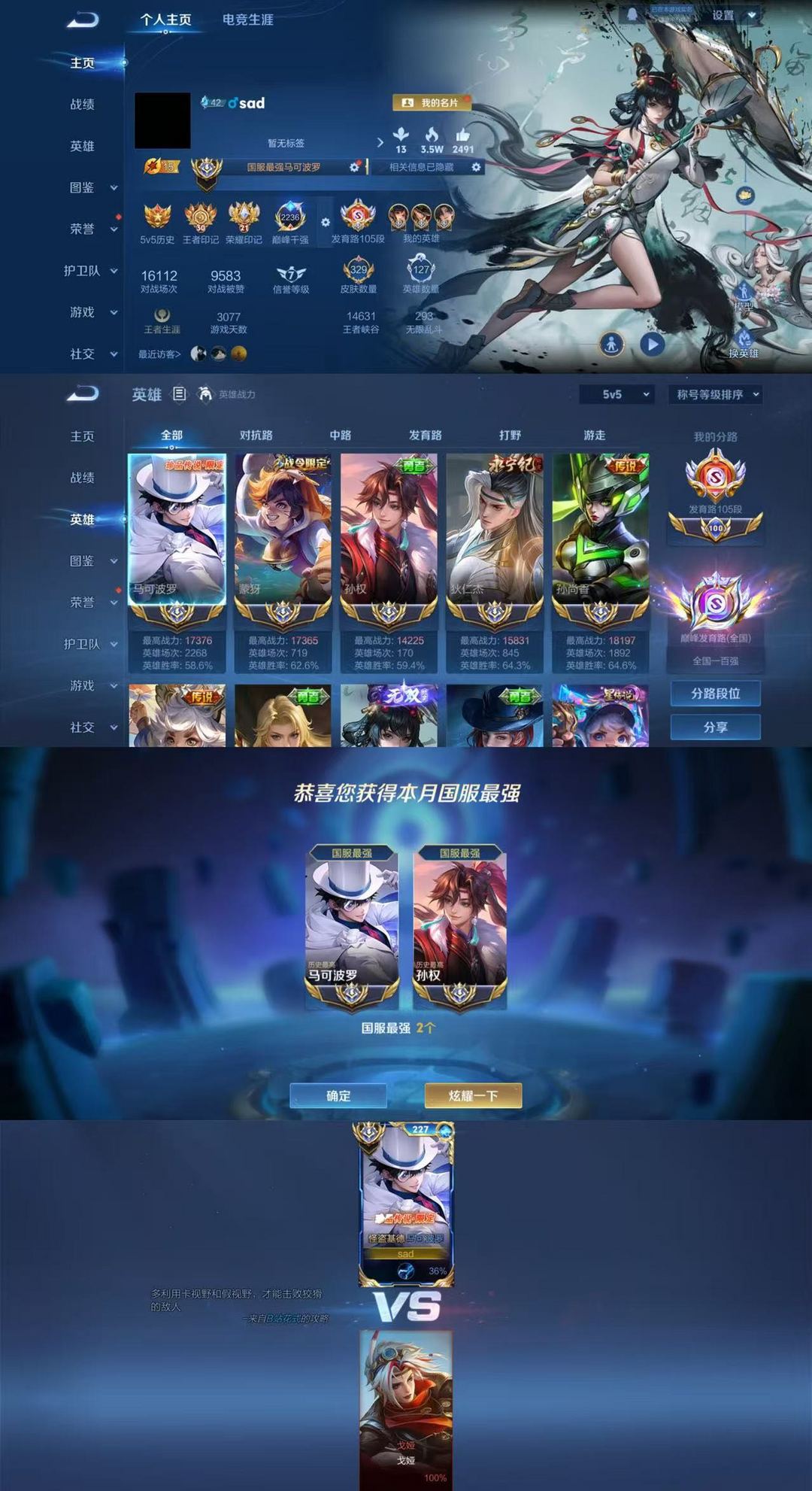 巅峰2240千强框⭐2月正式服双国服马克波罗孙权⭐105段五国服⭐怪盗基德限定⭐可排位禁巅峰