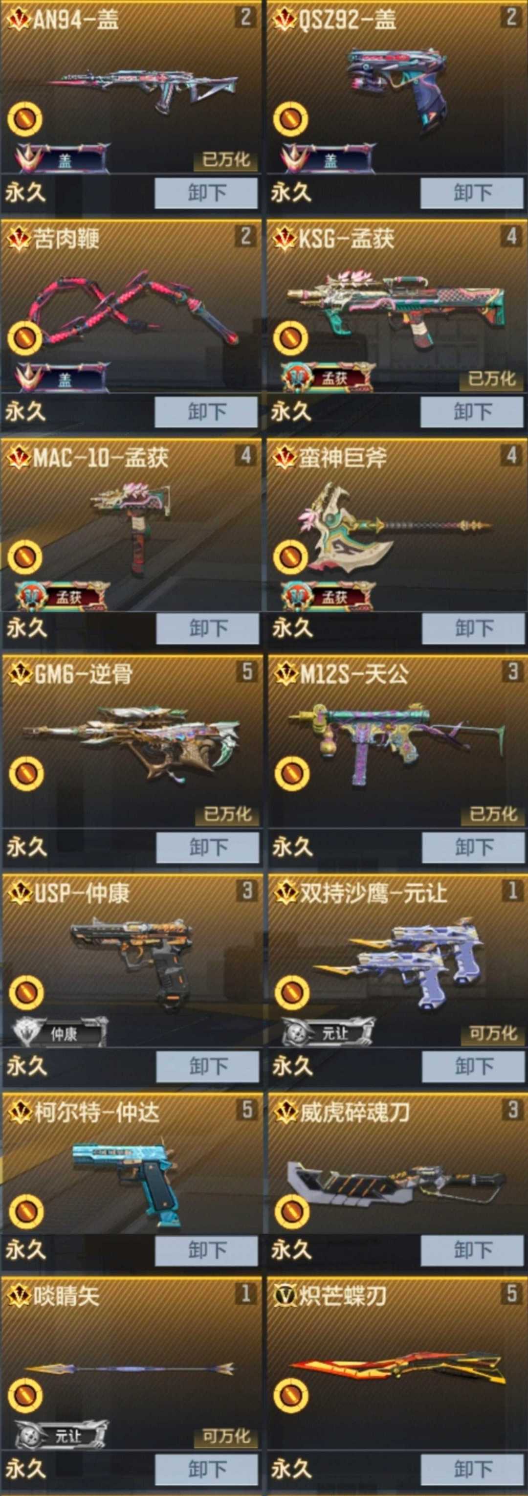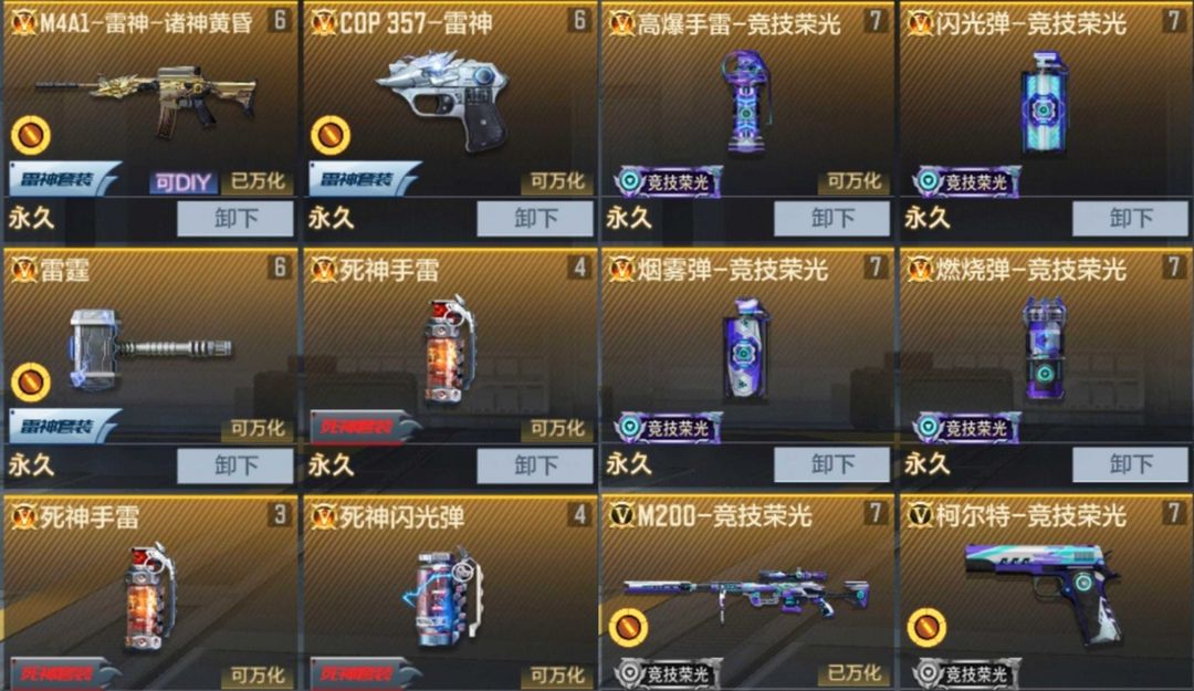 200v八王者♥雷神套cop♥三国逆骨天公♥AN94盖套♥孟获套♥M200竞技荣光♥王盘霆狱尊影心神