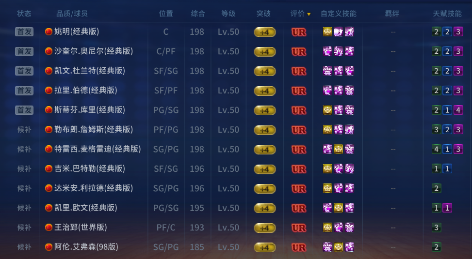 装备描述:UR利拉德、UR巴特勒、UR大治、PG/SG/SF全10星三包齐全
