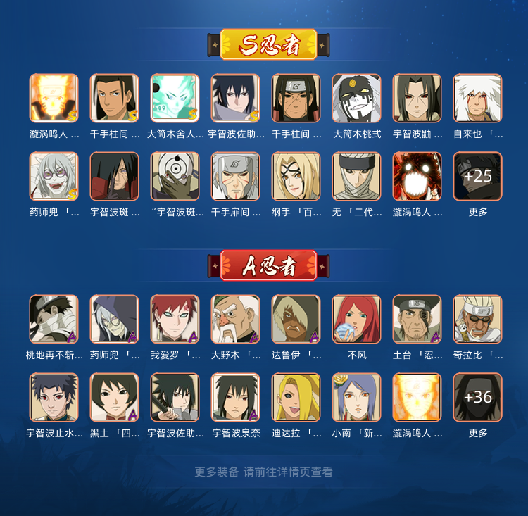 装备描述:宇智波止水「新春限定」/神秘面具男 「红夜之刃」/宇智波斑 「秽土转生·解」/波风水门「秽土转生」/千手柱间 「木叶创立」/宇智波止水 「须佐能乎」/漩涡鸣人 「九喇嘛连结」/宇智波斑「白面具」/艾 「忍界大战」/宇智波佐助 「永恒万花筒」/大筒木桃式