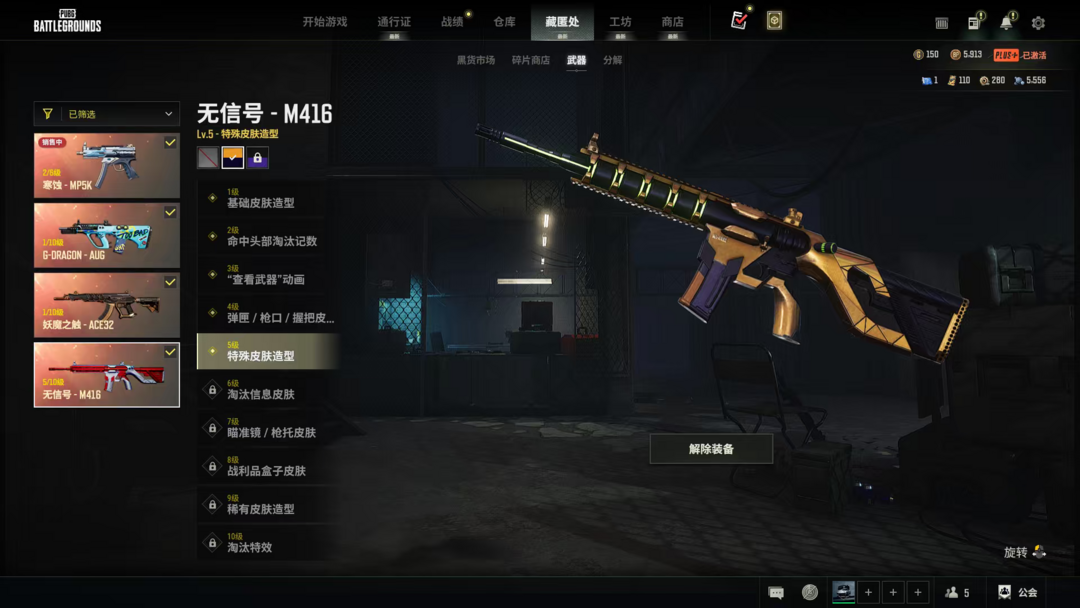 PLUS可排位√布加迪保时捷卡宴√⑤级无信号m416异色②级寒蚀p5k妖魔ace权志龙aug紫色烟枪