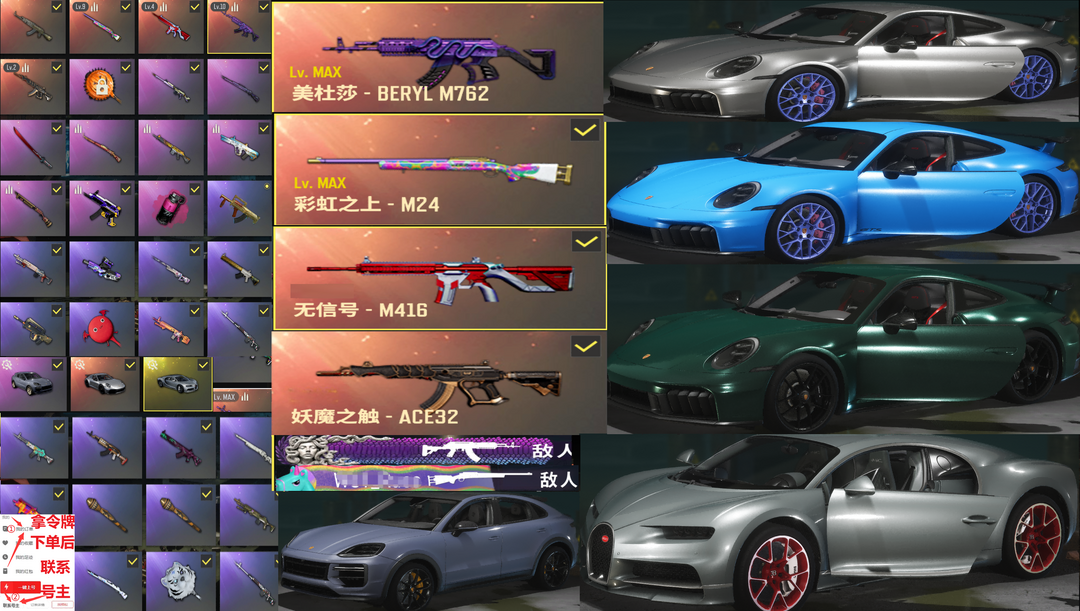 布加迪威龙保时捷911✅⑩美杜莎762⑩M24彩虹无信号M4妖魔多利安东南亚黑人柏林战神滑雪可排位