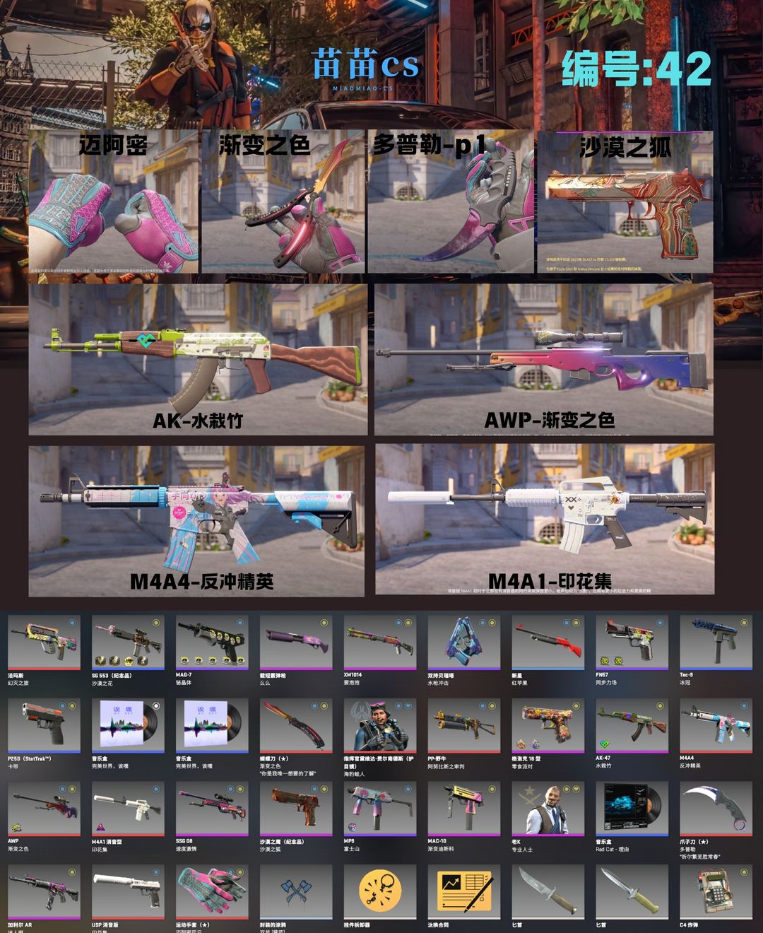 【完美绿色A+♦5E授信B+】迈阿密♦渐变之色蝴蝶刀+粉红爪子❤渐变大狙❤水栽竹❤印花集❤沙漠之狐