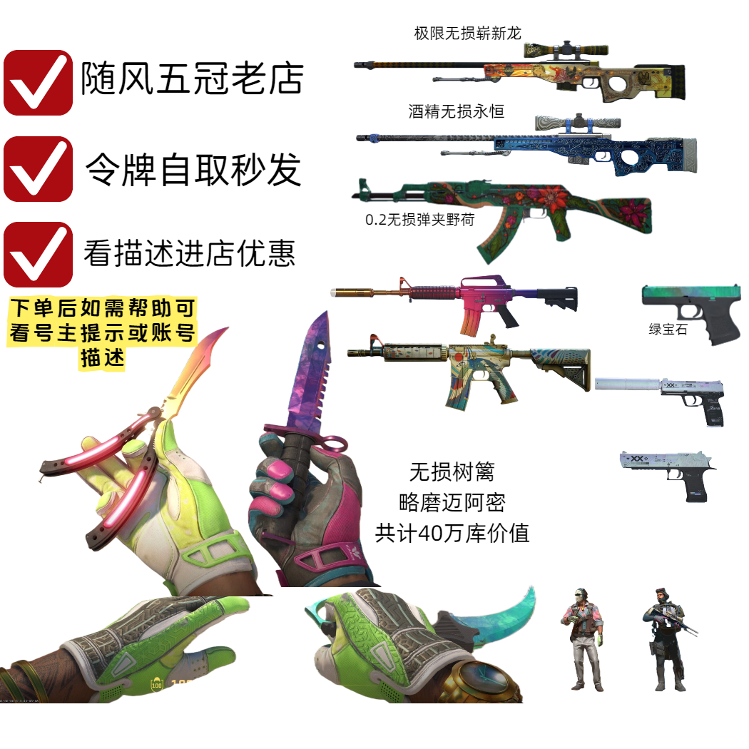 可绿色完美/5e/崭新龙狙永恒/野荷ak/略磨迈阿密/无损树篱迷宫/渐变蝴蝶/绿宝石爪/粉宝石m9/