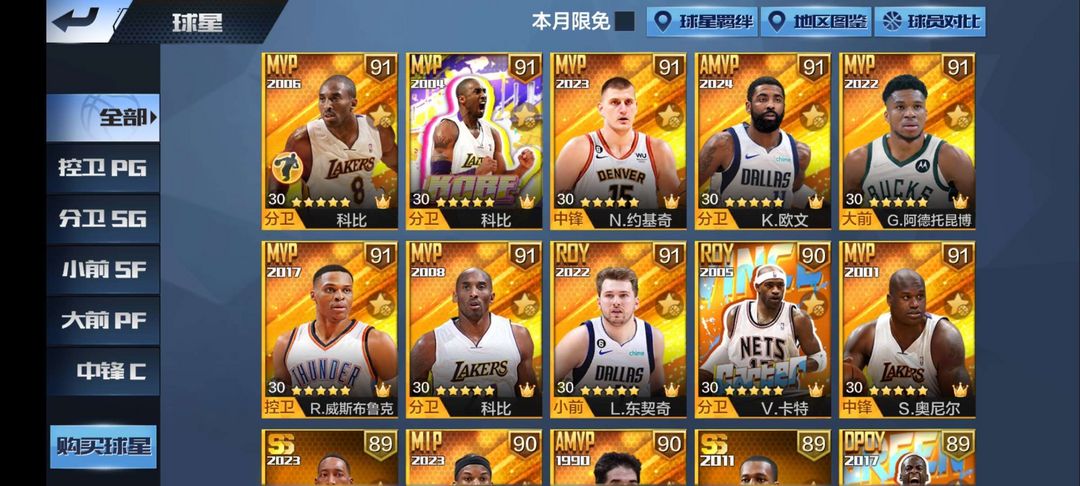 可排位❤️9天选3硬汉35点卷11典藏❤️天选硬汉二专新科比欧文约基奇字母哥威少东契奇奥尼尔格林卡特