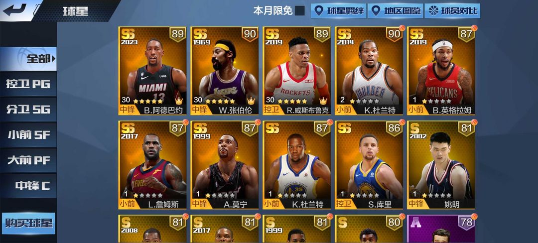 可排位❤新点劵火箭龟威少、阿德巴约、大帅张伯伦、雷霆杜兰特❤新号低段位❤④点劵