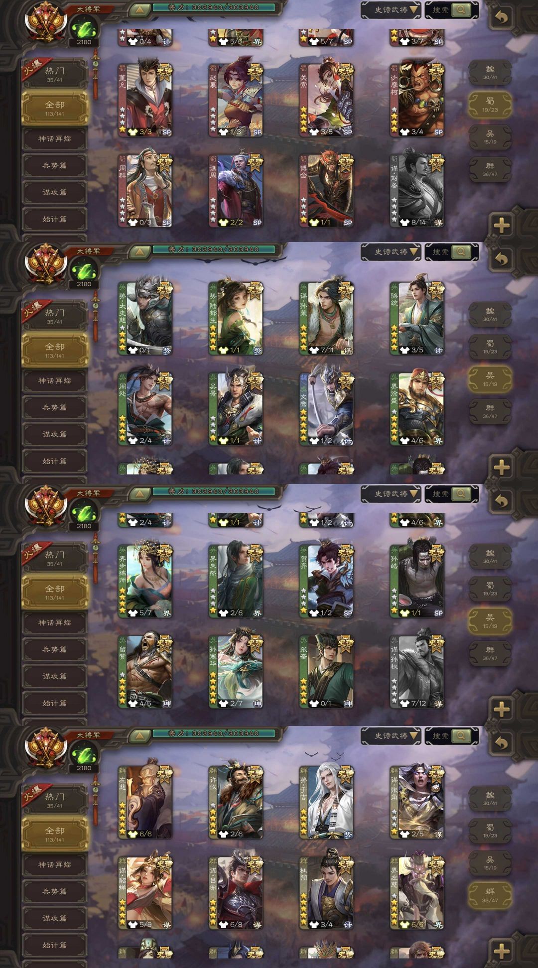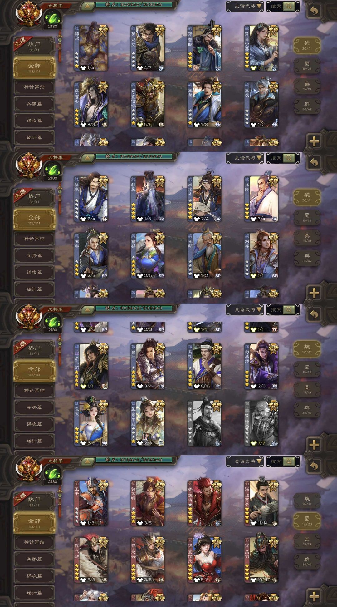 有卡/伪全扩/神姜维/势邓艾/崔芙/枭龙破渊曹髦/动势辛宪英/势魏延/至尊谋关羽/排位209近乎满